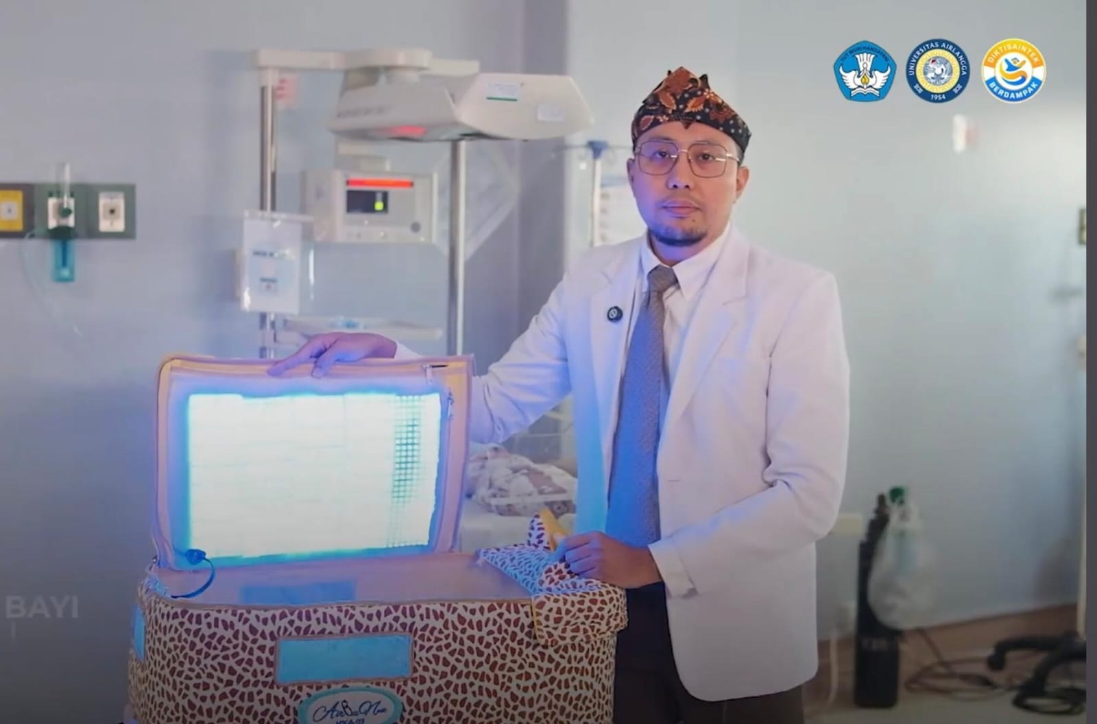 Smart Phototherapy System Airlangga Bilirubin Nesting (AirBiliNest) adalah selimut bedong fototerapi inovatif untuk menangani bayi dengan hiperbilirubinemia. Dirancang aman sesuai pedoman internasional dan telah terdaftar resmi dengan nomor paten DID2022035302. Dengan teknologi cerdas dan desain portabel, AirBiliNest menjadi solusi fototerapi ideal yang nyaman, efektif, dan direkomendasikan dokter anak.